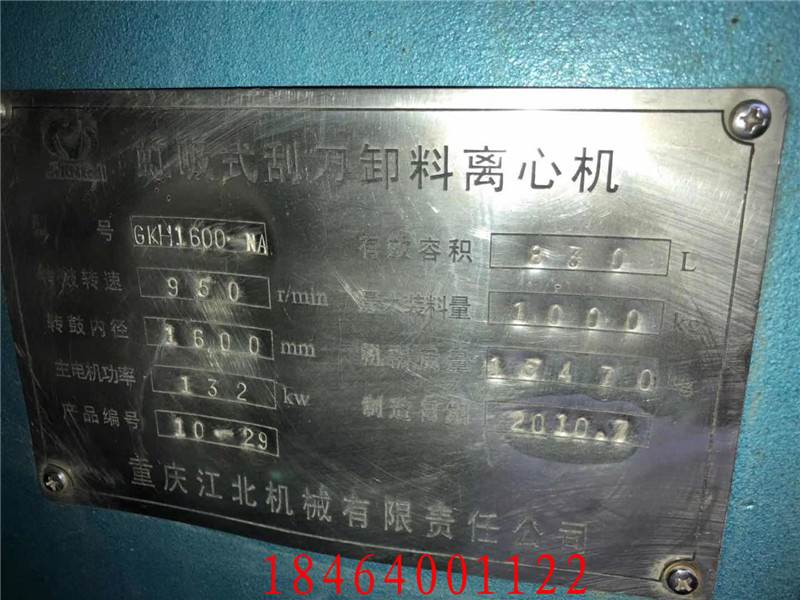 产品详情:梁山恒基二手化工设备有限公司,现有虹吸刮刀卸料离心机-GKH1600全新二手离心机多台,主电机功率132kw,有效性容积832l,状况良好的虹吸刮刀卸料离心机可以在现场展开测试,并可以提供技术人员开展访问安装调试,请来电咨询商讨。